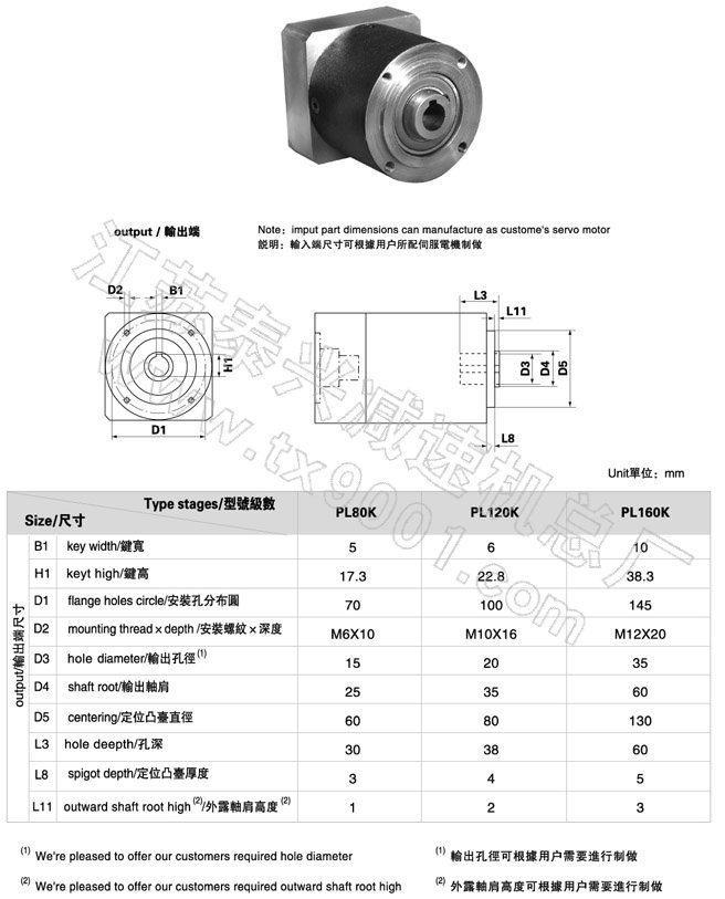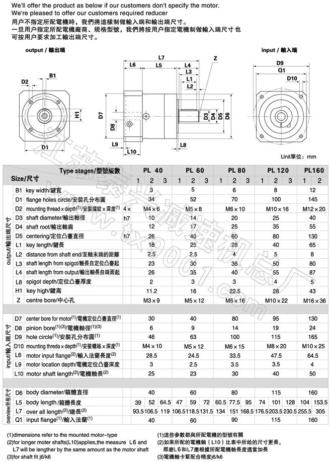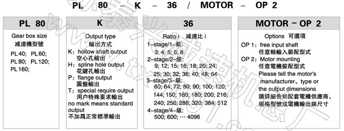 | PL/OP1 任意输入轴型行星减速机外形安装尺寸 |