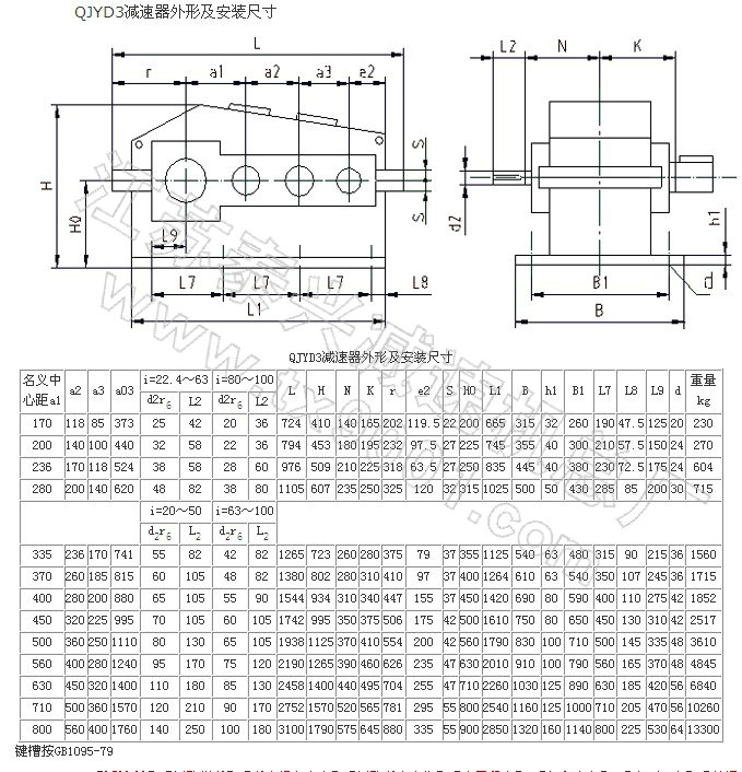 QYD、QJYD起重用减速机外形及安装尺寸
