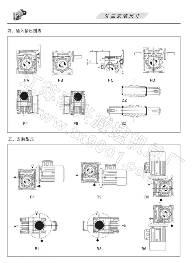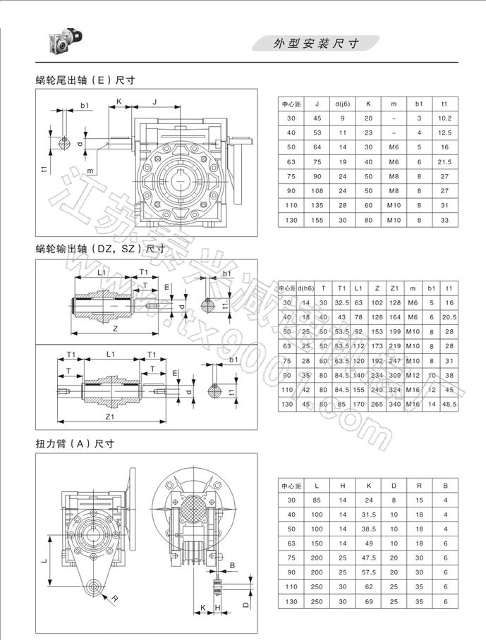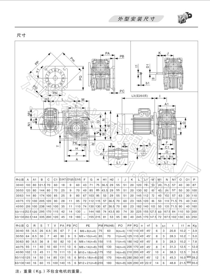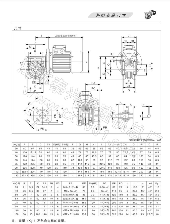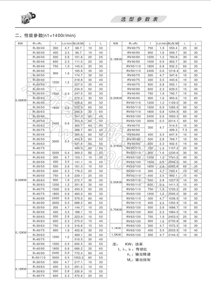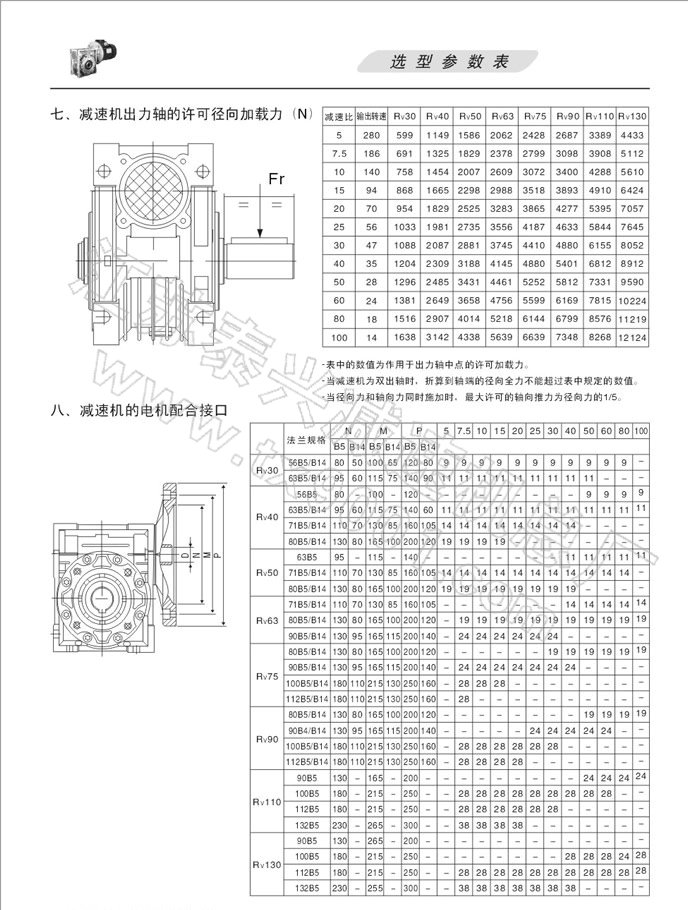 RV系列铝合金蜗轮蜗杆减速机-选型参数表