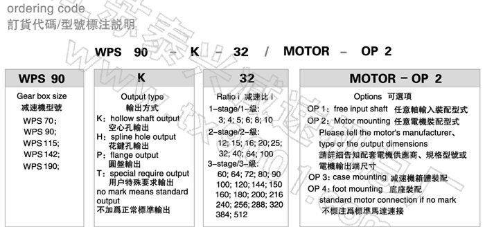 | WPS系列精密行星减速机订货代码标注说明 |