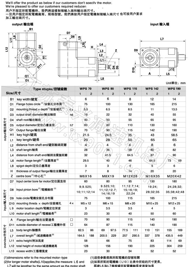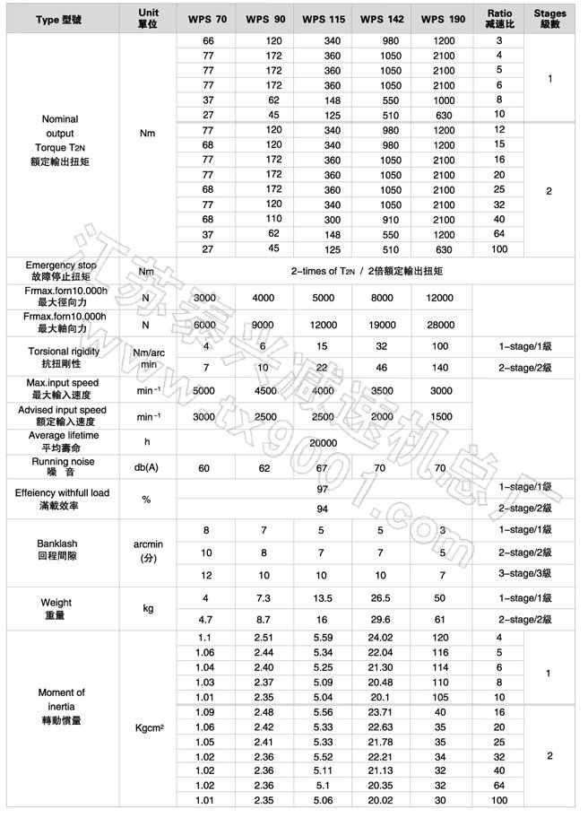 | WPS 系列精密行星减速机技术参数 |