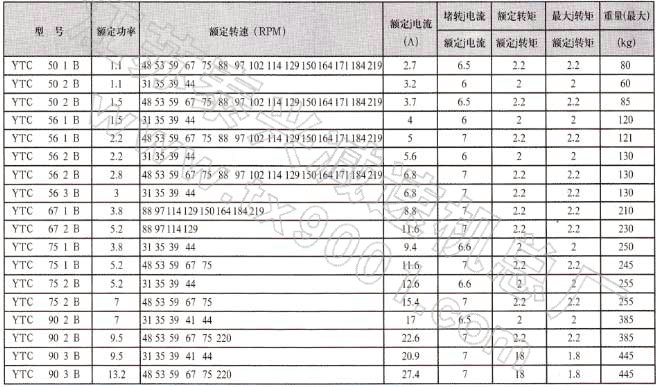 YTC型系列齿轮减速三相异步电动机相关参数