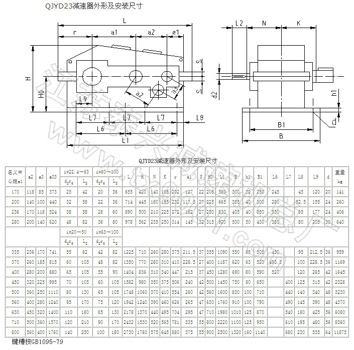 QYD、QJYD起重用减速机外形及安装尺寸