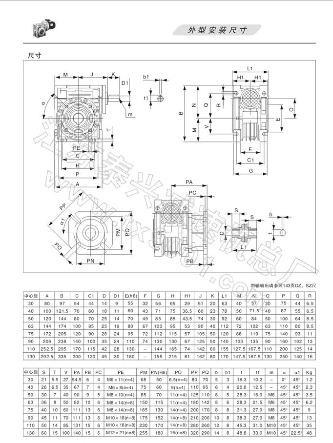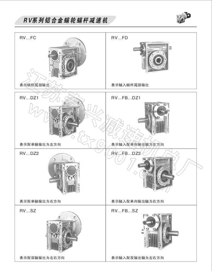 RV系列铝合金蜗轮蜗杆减速机-选型参数表
