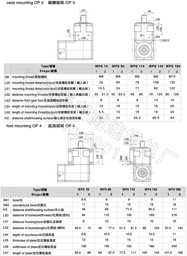 | WPS/OP3/OP4行星减速机外形安装尺寸 |